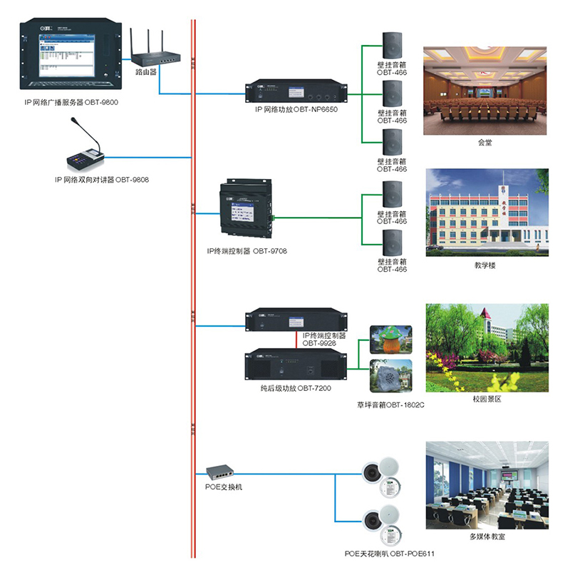 網絡廣播可以基于現有計算機網絡建設,安裝時無需單獨布線,基于IP網絡的傳送,每個廣播點都可以有各自獨立的廣播節目,為廣播引入日常廣播提供了可行性。區別于傳統的音頻調頻以及可控制的智能廣播,是真正意義上的純數字化網絡廣播。應用于網絡建設,不僅真正實現音頻廣播、視頻監控、計算機網絡的多網合一,其個性化、智能化產品設計,把理論概念做到真正實用化。在實際應用中,通過軟件的管理設置,不管你廣播處于何處,搭建什么樣結構的網絡,只要基于TCP/IP網絡協議,就可以實現網絡廣播,廣泛應用于:學校、寫字樓、大型商超、高速公路、大中型工廠企業、花園別墅小區、各星級酒店…