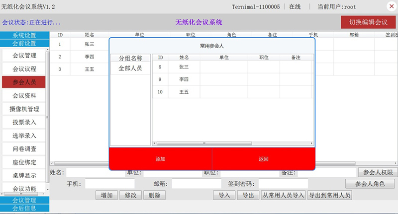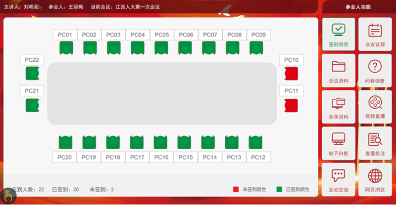 1.會前準備:會前準備包含會議室預(yù)約及管理,同時對確定的會議室設(shè)備進行開會前資料上傳,席位的準備及參會人員名字的錄入等。