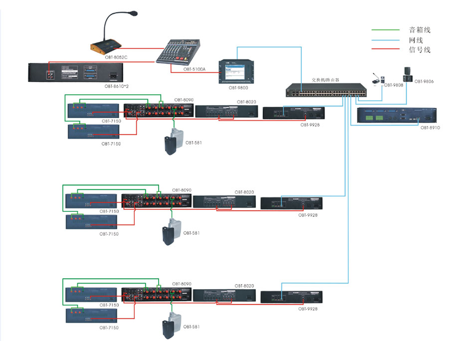 廈門醫院會議室應用的OBT專業擴聲系統參考國家廳堂擴聲設計標準一級進行設計,現場聲壓級達到國家一級標準,主要由聲源、音頻處理設備、功放及揚聲器系統組成,保證整個會議室的每個空間每個角落的聲場聽覺均勻,沒有出現失真、偏音、混音、回響等不良音響效果。